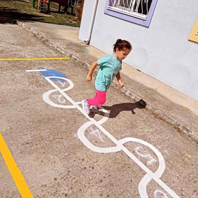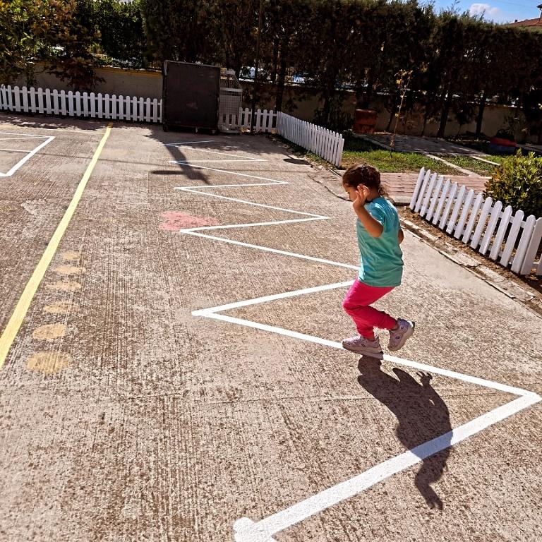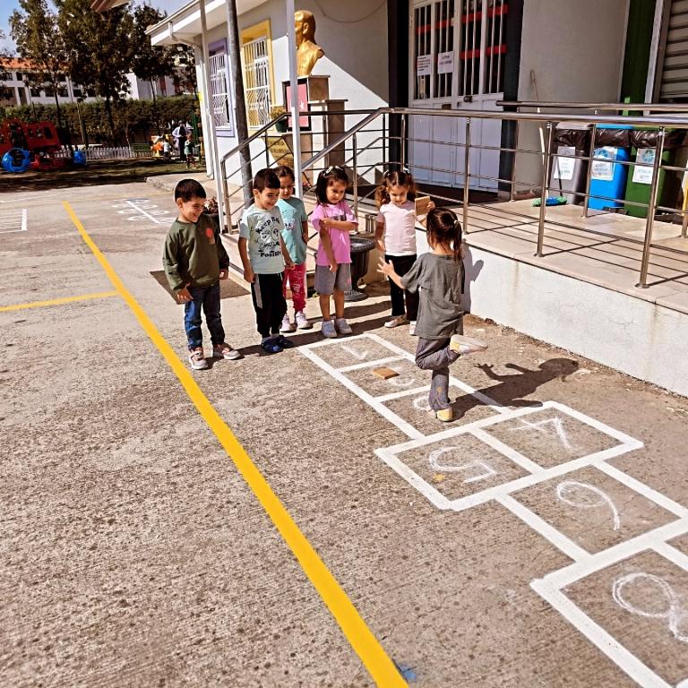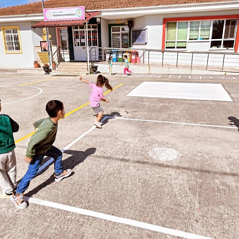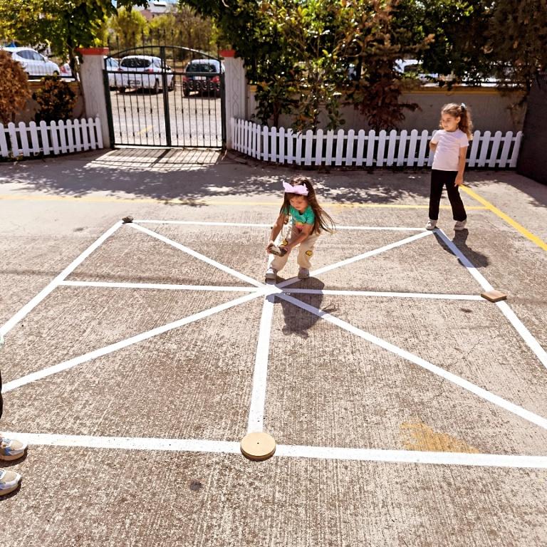 Okulumuzda çocukların her açıdan gelişimini hedeflerine kültürel değerlerimizi aktarmayı da göz ardı etmedik. Özellikle geleneksel çocuk oyunlarının da oynanabileceği oyun alanlarını okulumuzun bahçesine kazandırdık. Bu sayede pek kullanılmayan ön bahçemizi de aktif olarak kullanılır hale getirdik. Renklendirme ve simgeleme süreci devam eden oyun alanlarımızda;